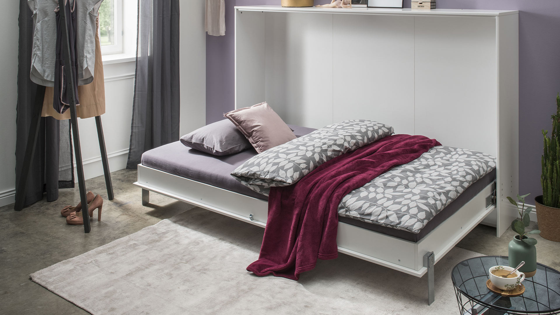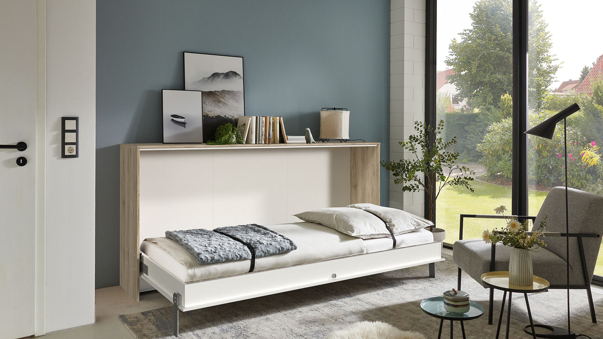 JUIST passt sich deinem Rhythmus an. Morgens verschwindet das Bett, die Fläche öffnet sich. Platz für dein Workout, für Besuch, für alles, was dein Tag so mit sich bringt. Abends klappt alles genauso unkompliziert zurück. Kein Umräumen, kein Verzicht. Dafür ein smarter Wechsel von Tag zu Nacht.