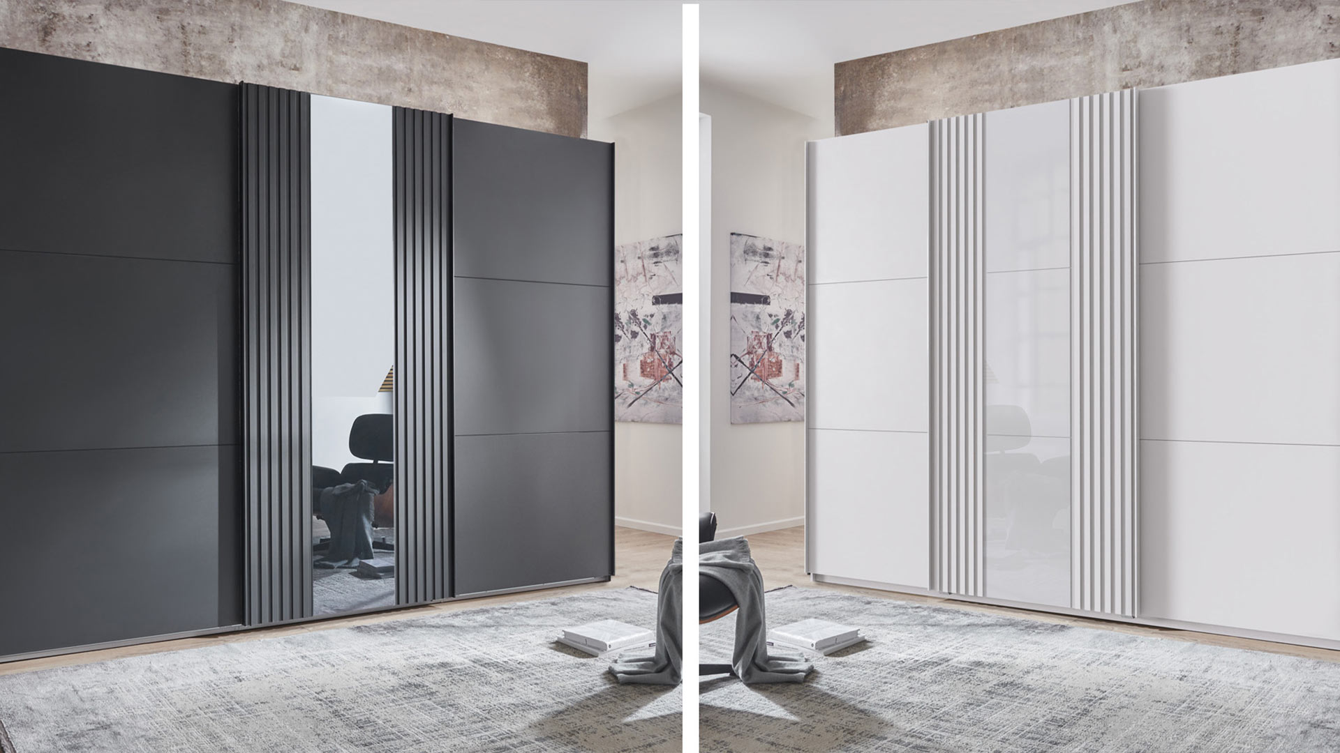 Ob du dich für eine Party stylst, deine Einkäufe verstaust oder einfach nur entspannst – dieses Schlafzimmer bietet dir die perfekte Kombination aus modernem Design und südlichem Charme. Du bekommst ATLANTA in den Farben Graphit oder Weiß. Absetzungen in Akustikpaneel-Optik an Schrank und Bett setzen stilvolle Akzente und sorgen für ein harmonisches Ambiente.